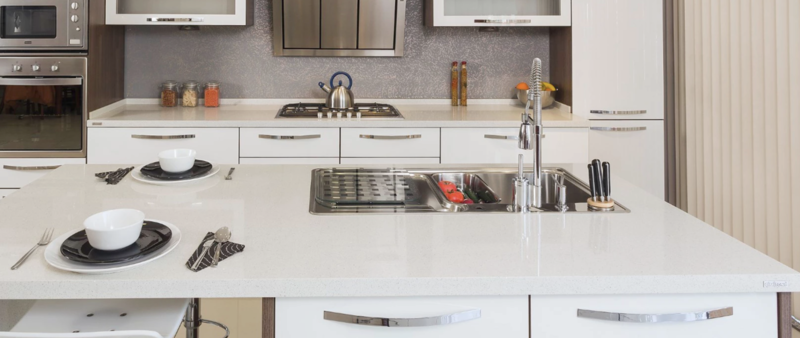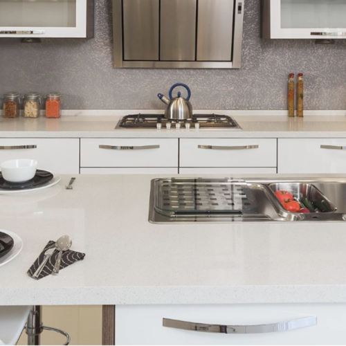 Quartz countertops are the hardest stone surfaces, made from naturally occurring minerals that are one of the hardest (7 on the Mohs Scale of 10). Cimstone uses up to 90% of the purest quartz particles, melded with resins and pigments to make the most resilient surfaces on the market. Quartz countertops are produced in a strictly controlled environment to meet the most stringent safety standards in both manufacturing and finished product.