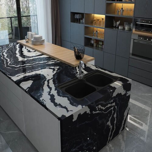 Classic quartz offer the possibility of creating seamless panels or larger surface areas to be covered seamlessly and without joints in the surface.
