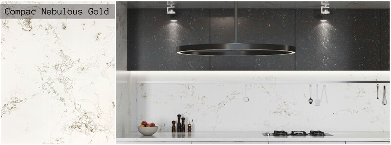 Compac Nebulous Gold is Ideal for use as Kitchen Worktop, Island Worktop or a splashback.