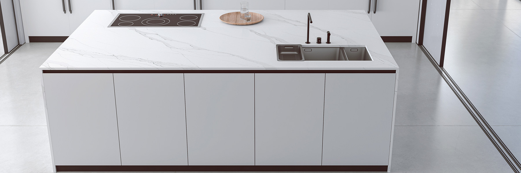 Compac products are covered by an associated warranty, as if time stops to survey the absolute beauty of these creations. Quartz, one of COMPAC’s most resistant materials, comes with a 33-year warranty in all designs. This material has perfect technical and aesthetic qualities that can be adapted to kitchen countertops.