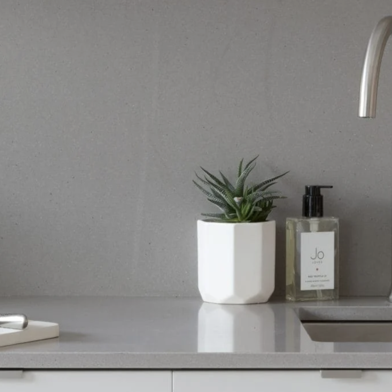 With its minimalist design and cool-toned base colour, this stylish surface will blend seamlessly into any environment. For a eye-catching look pair with bright, bold appliances, or team with exposed brick work or stainless steel for that industrial twist.