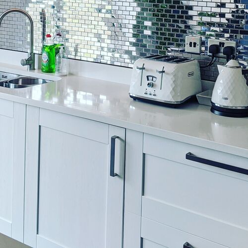Topazio quartz is Ideal for use as Kitchen Worktop, Island Worktop or a splashback.