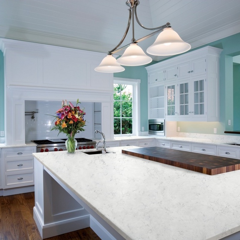 Nilestone Carrara is a white quartz with grey veining