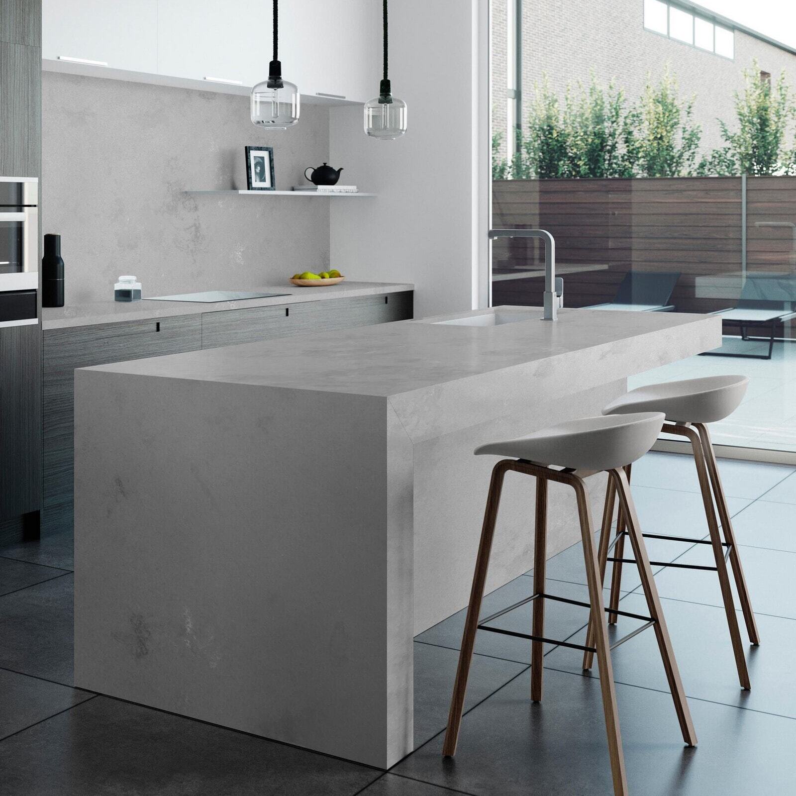 Nilestone Concrete Oyster is a off-white background, you will find veins of grey that flow and create the impression of marble