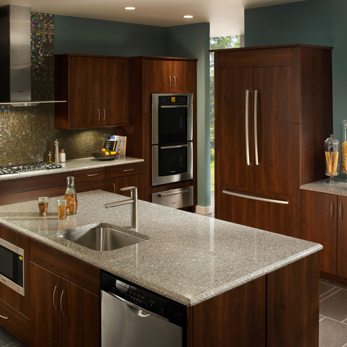 The Suede texture is a silky matte finish to add a natural stone feel to a traditional kitchen.