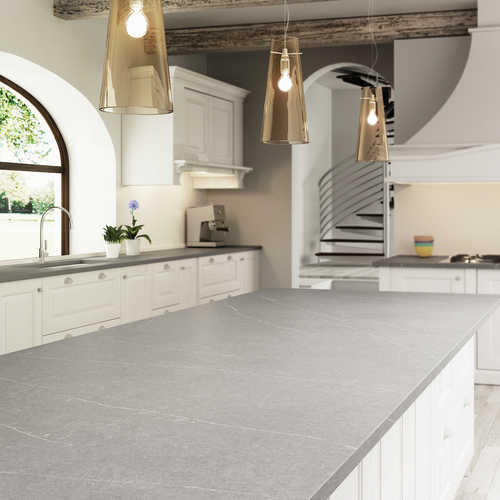 Silestone Et Serena - A finish of grey stone with fine, gentle, white lines drawn through to its depths. The subtlety and softness of nature define this distinguished proposal.