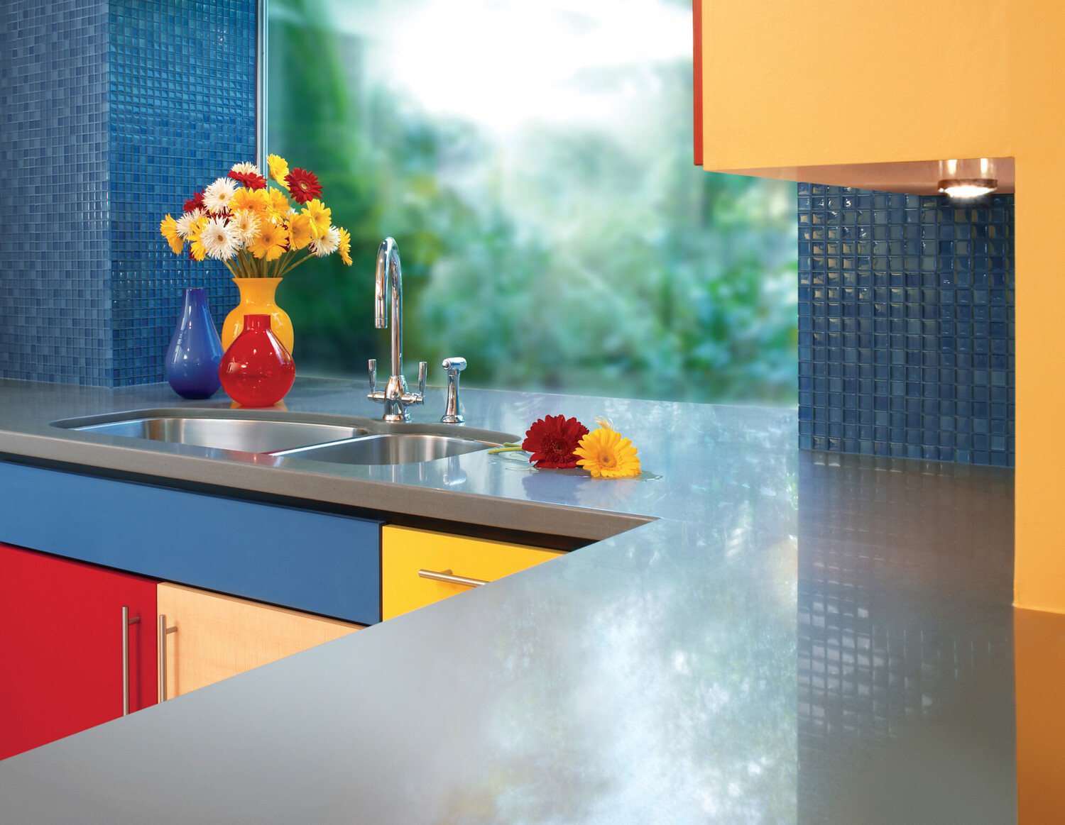 - Wide range of beautifully designed colours Silestone offers beauty and a wide range of colours and extraordinary textures like Polished, Suede or Volcano: The Polished finish offers a glossy surface that is highly resistant to staining and scratching. The Suede texture is a silky matte finish to add a natural stone feel to a traditional kitchen. The Volcanic finish is a highly textured, rough finish ideal for contemporary, industrial or traditional style kitchens.